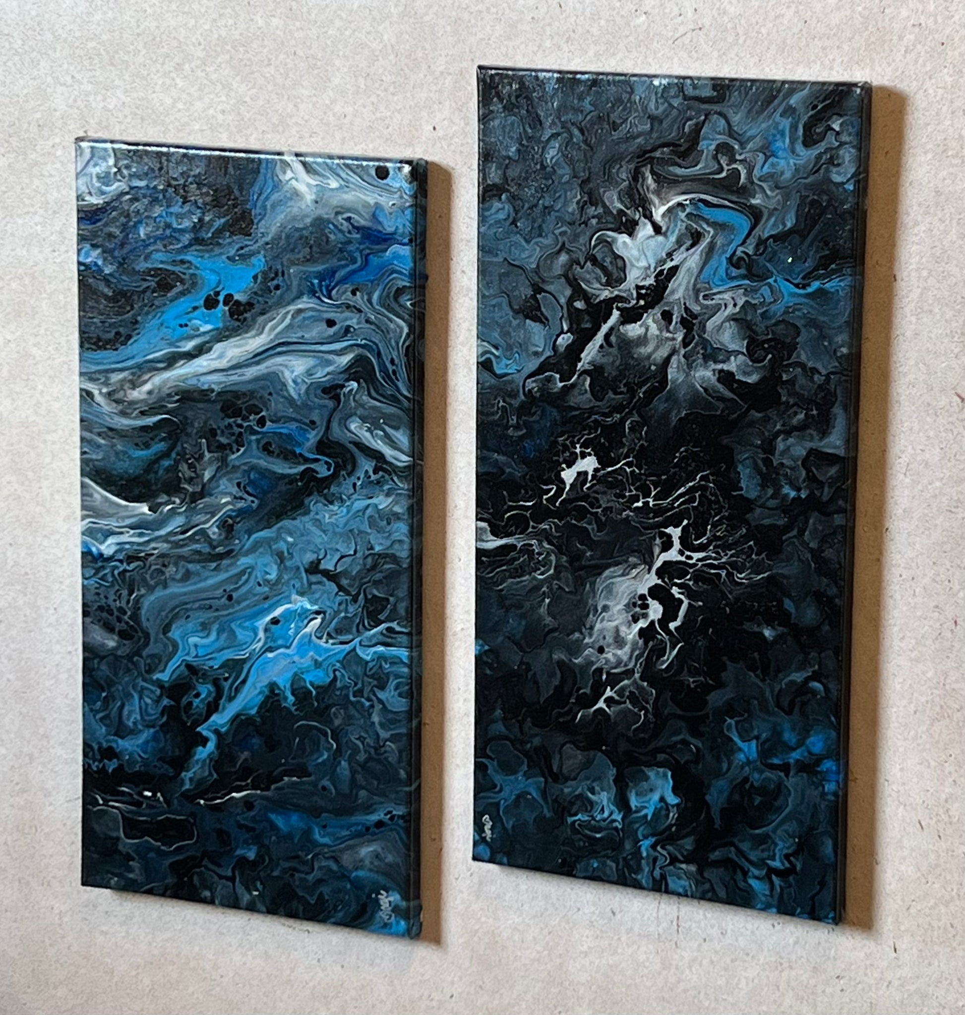 Metallic Blue/Black" Acrylic Pour (2) 10x20